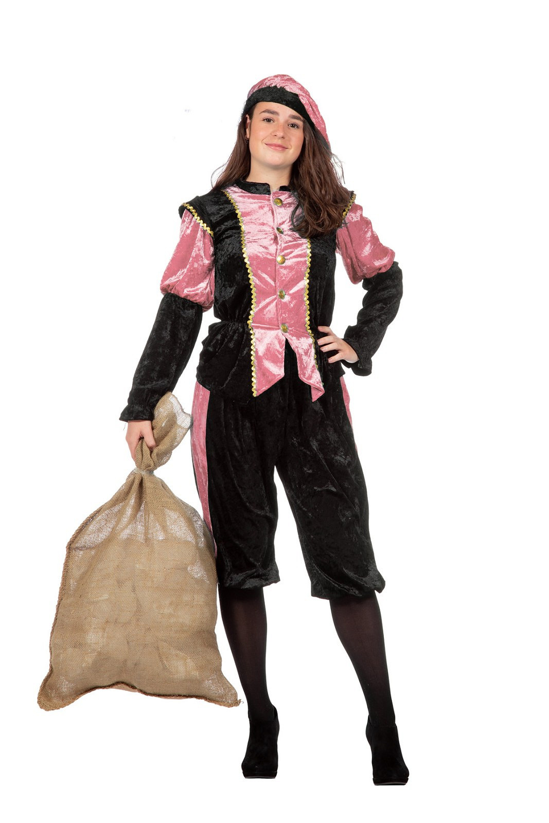 Pieten kostuum Diego zwart/roze